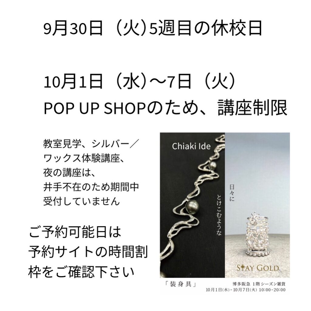 主宰者(井手)イベント出店のため期間中の開講制限をさせて頂きます