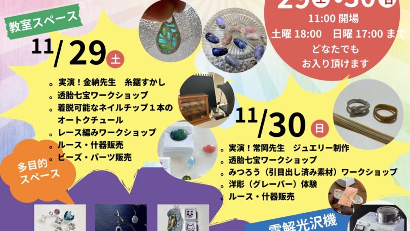 秋も深まり、いよいよ寒い冬がやって参ります。 クラフトルームHAKATAでは、新しい取り組みとして、 教室のスペースを使ったイベントを開催します。 出展者は、受講生や作家のみなさん。 実演やワークショップ、販売会を開催し … 続きを読む 「Craft Room Festival」開催 2025.11.29-30